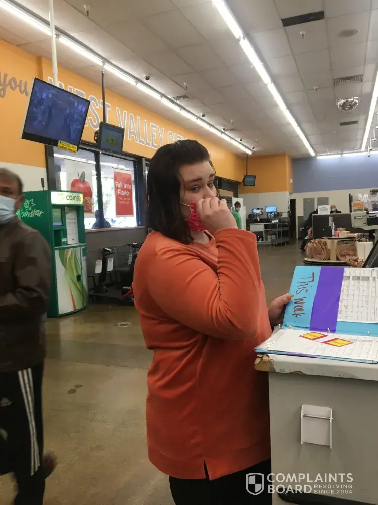 On Sunday 11/8/2020. Check out lady was busy with trash and said shed be right over. I unloaded the lighter items from my cart leaving heavier items for the remote scanner. Checker continued with even more trash activities. Feeling disrespected I took roughly 10 steps away from the area because as to take a breath to calm myself. The checker the shouts that...