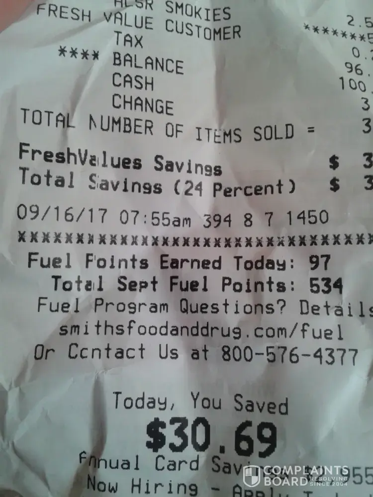 Been there done that. Other companies respond quickly, even management is great at a lot of large companies when someone makes them aware of problems. Smith's is a marionette of Krogers and is only afraid of Krogers.