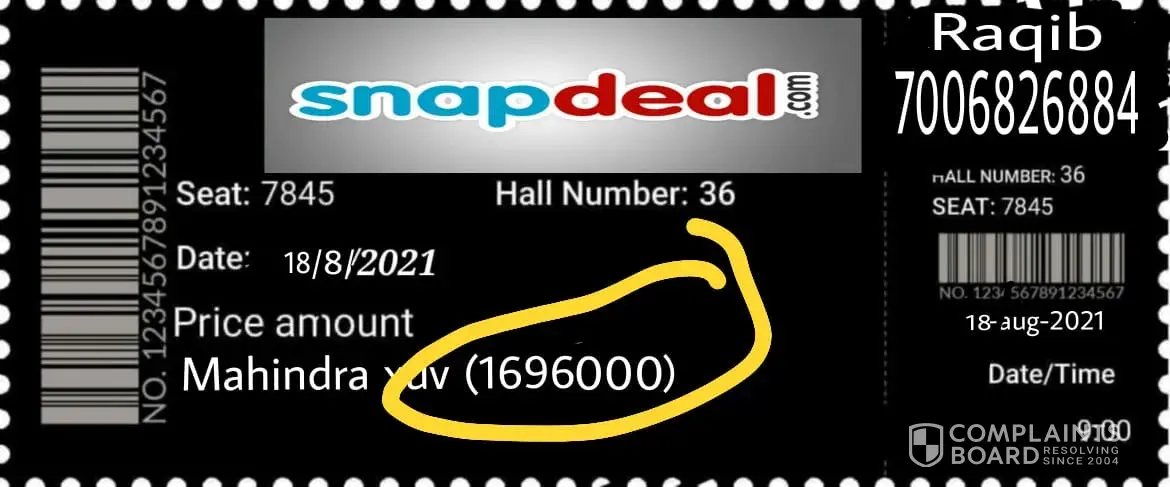 I got message from snapdeal that I have won prize in lucky draw from snapdeal but I didn't get prize and the prize was mahindra xuv 500 or 1960000 and snapdeal asked me to pay 6500 and I paid 7000 on behalf of snapdeal niether I got prize nor my money 7000 back snapdeal customer care and company employees are using bad language snapdeal is totally fraud license of snapdeal should be cancelled because they sell duplicate products at high prizes I request Mr Narendra mohdhi ji to cancel the license of snapdeal...