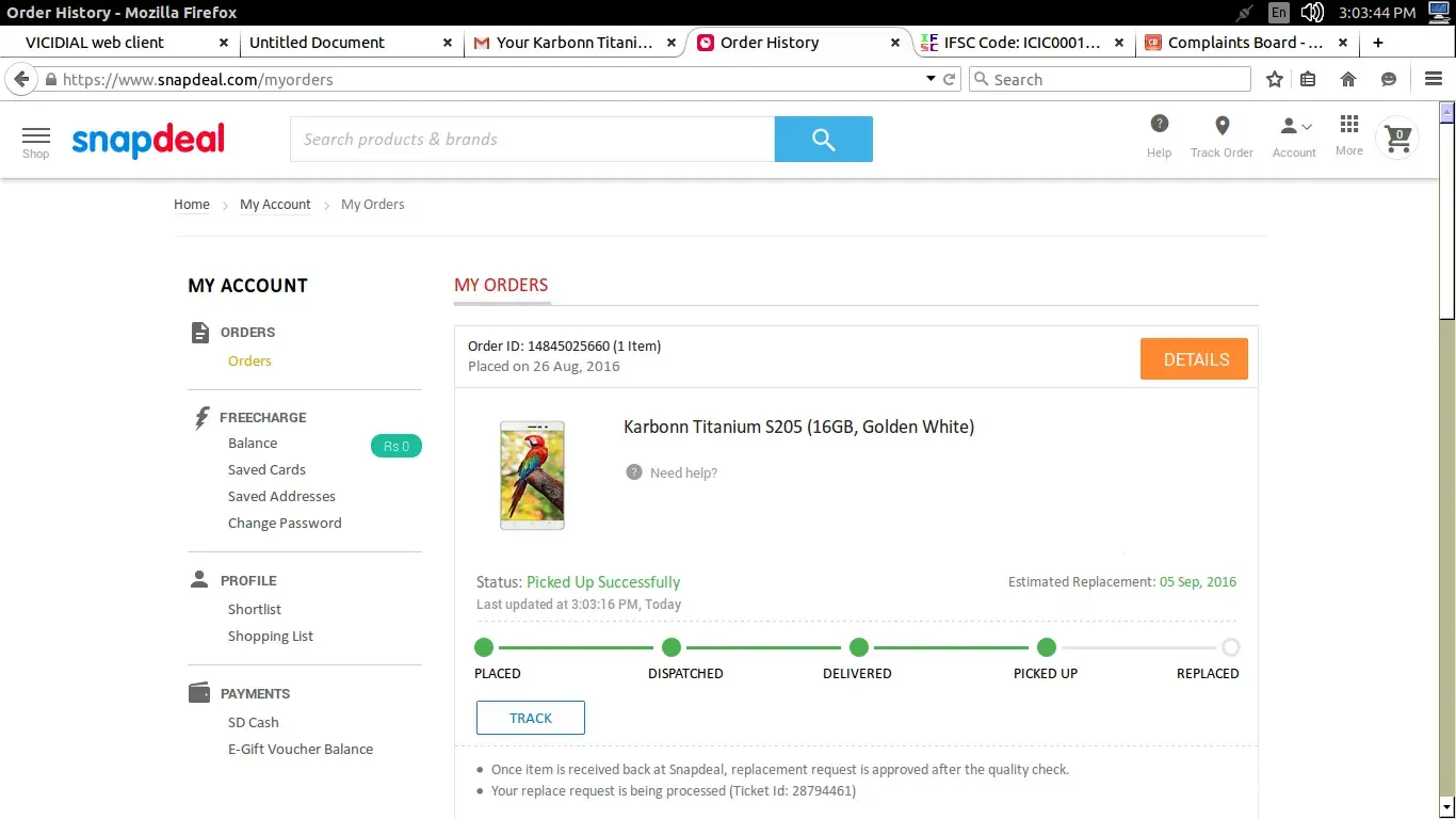 I am attaching the snapshots what shown to me in snapdeal and GATI DKT website from last 6 day's and expecting necessary action should be taken to resolve my problem .