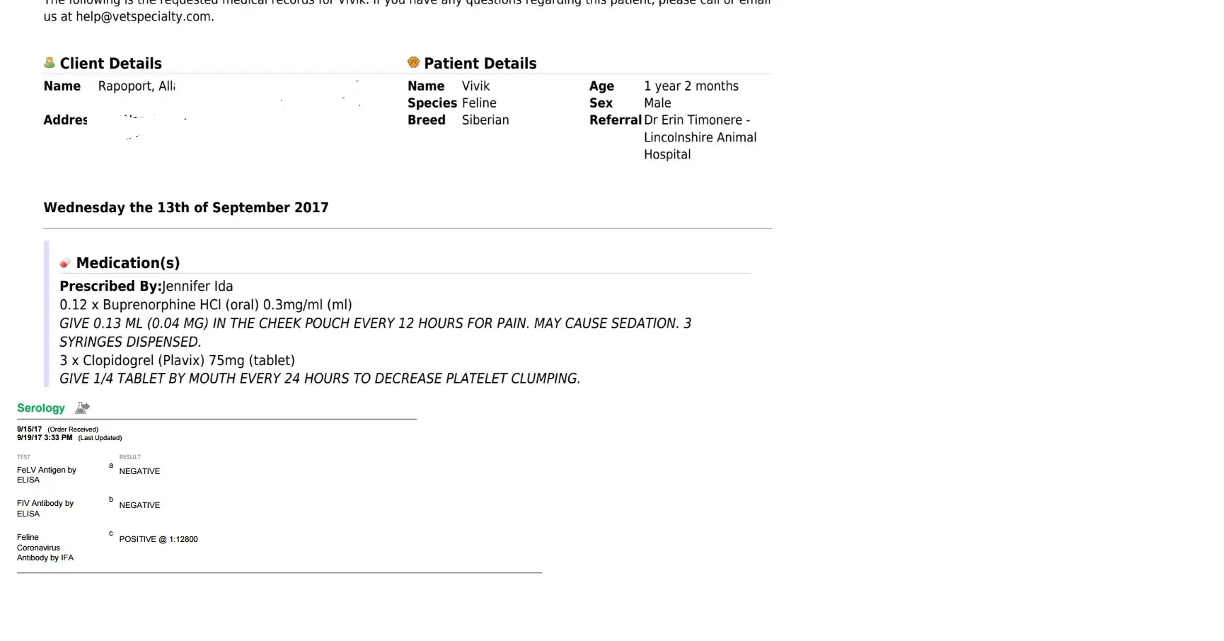 Additionally, I misunderstood the client when discussing the other kittens in the house. “Vivik” Rapoport is not the father of the other kittens in the household.