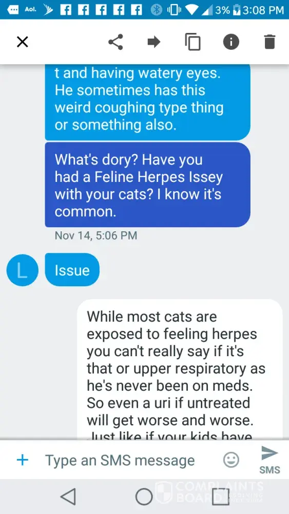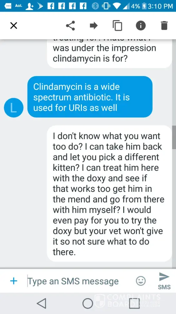You have still failed to answer any of the questions I asked about testing and provide any kind of proof to your claims...which leads me to believe you didn’t have your cat tested for FVR and your just slinging around complaints based on your opinion...not facts. If I’m wrong then by all means, please post proof of your cat having an illness that is covered under the contract you signed when purchasing. No consumer is just going to take your word for it..especially when you clearly are not the brightest bulb on tree to begin with...you knowingly purchased a kitten that you said was “sick” and then threw a giant fit because you purchased a sick kitten. 🤷ðŸ¼â™€ï¸