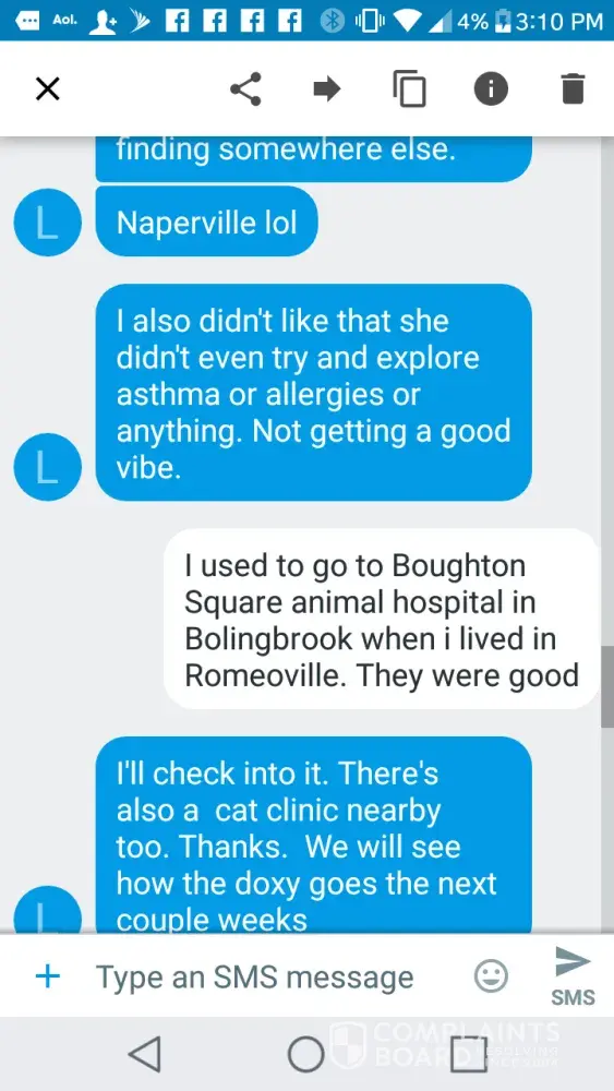 I would suggest they also could have been owners with very valid claims against Snowy Hollow. However, when they learned of Anastasia's threats, they decided to exit the thread. Who needs this abuse? Since then, I have heard from two Snowy Hollow owners with sick kittens who do not want to go public on Yelp or on this board, perhaps for that very reason.