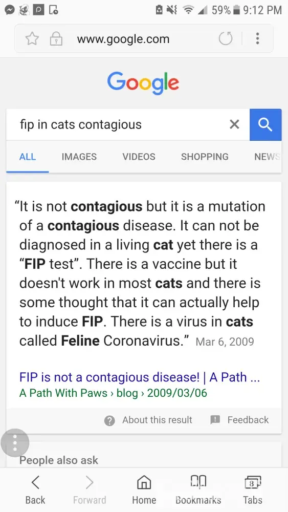 You changed a paragraph in there or something. Ask any vet. FIP is NOT contagious, it is a mutation. You cannot catch a mutation. they don't fully understand it but it is not contagious, there is no preventative, no test (until post mortem) and no cure as of yet. It is no ones fault if a cat developed it. I have explained FIP to Christine as well as to you. It has nothing to do with feces. I even had a long conversation with your vet about it. Either your article was incorrect or you copy and pasted what you wanted it to say. I will post correct information on it down below. Feel free to ask any vet. Or read a real article on it. It's the lack of education on things that causes these types of issues.