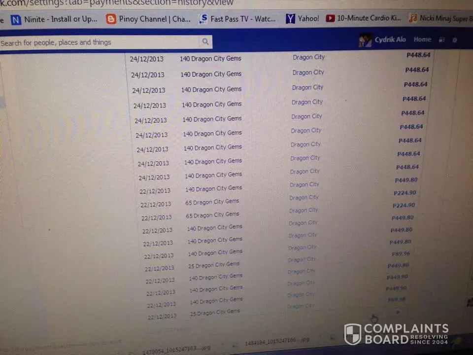 my 8 year old son has been playing dragon city for a long time. there was no in app purchases made before. then on 30th of november he asked me if i can buy him some dragon city gems which i agreed using my credit card for that one time only and it costs me more or less 500 philippines peso my son is in the philippines that's roughly $10 more or less. i entered my credit card credentials i did the purchase myself. without my knowledge my 8 year old son without my knowledge has been purchasing dragon city gems ever since without telling me, which i think is fraudulent in the part of the administrator of this game they should have a code or need to enter the a pin for my credit card before they approve the purchase. i almost fainted when i received my bank statement when i saw i need to pay more or less $2000. $2000 to pay for a game is downright outrageous i feel i've been robbed. i hope you will look at my complaint and advice me what are the steps i can do so that they will refund my money back. i already sent a complaint to facebook but they didnot email me back. here's my email alo.[protected]@yahoo.com if you can take notice at my case please send me an email on the steps that i could take so that i can have my hard earned money back. thank you...
