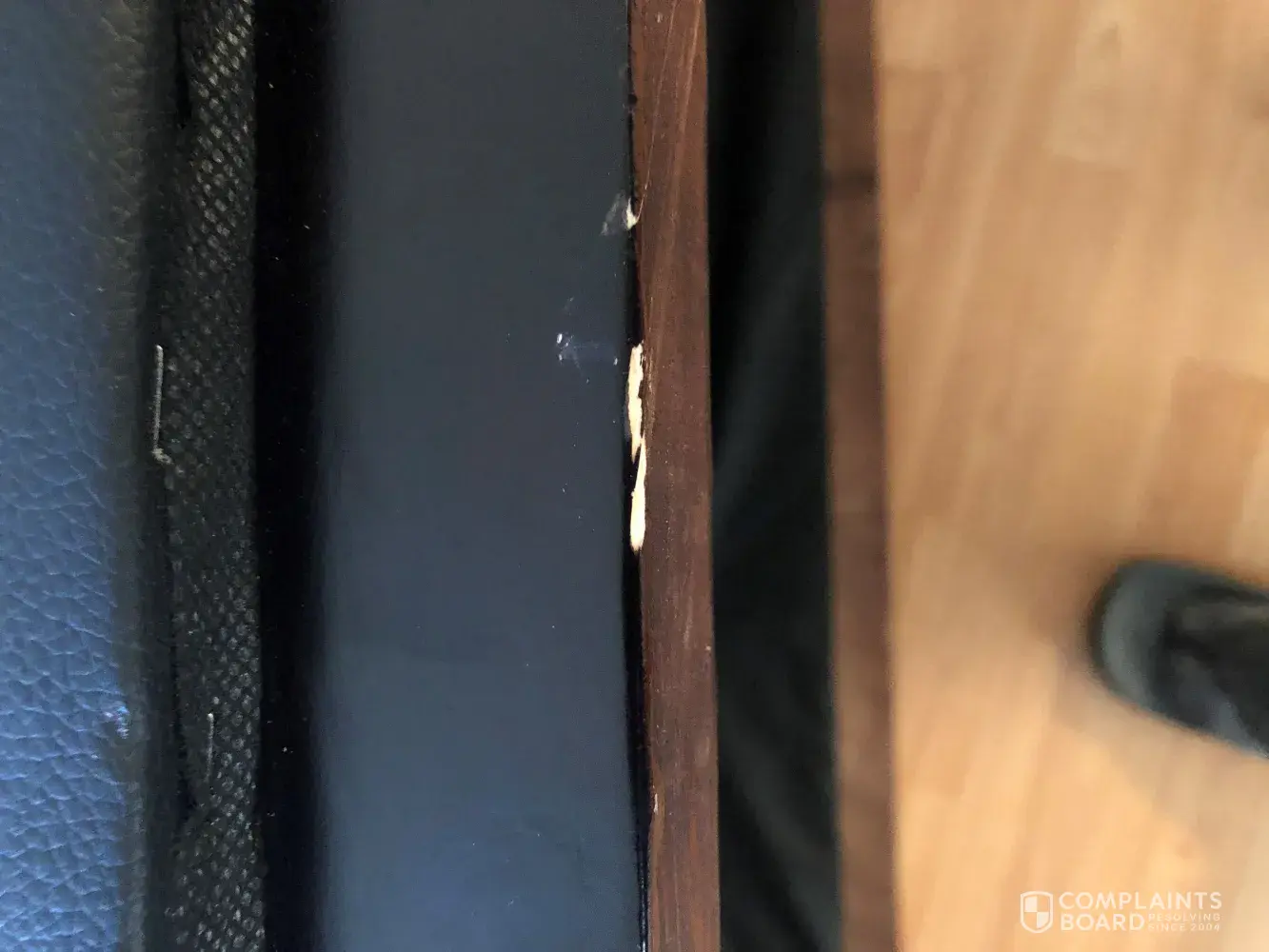 When I finally received the legs, my company had already arrived, and we were slow to assemble the chair. This turned out to be a big mistake as we encountered more issues. Firstly, one cushion wasn't filled in properly, leaving an empty corner. Secondly, two of the leg screws were screwed and drilled incorrectly, making it impossible to attach the legs. When I contacted the company, they refused to help, citing the 30-day delivery period.