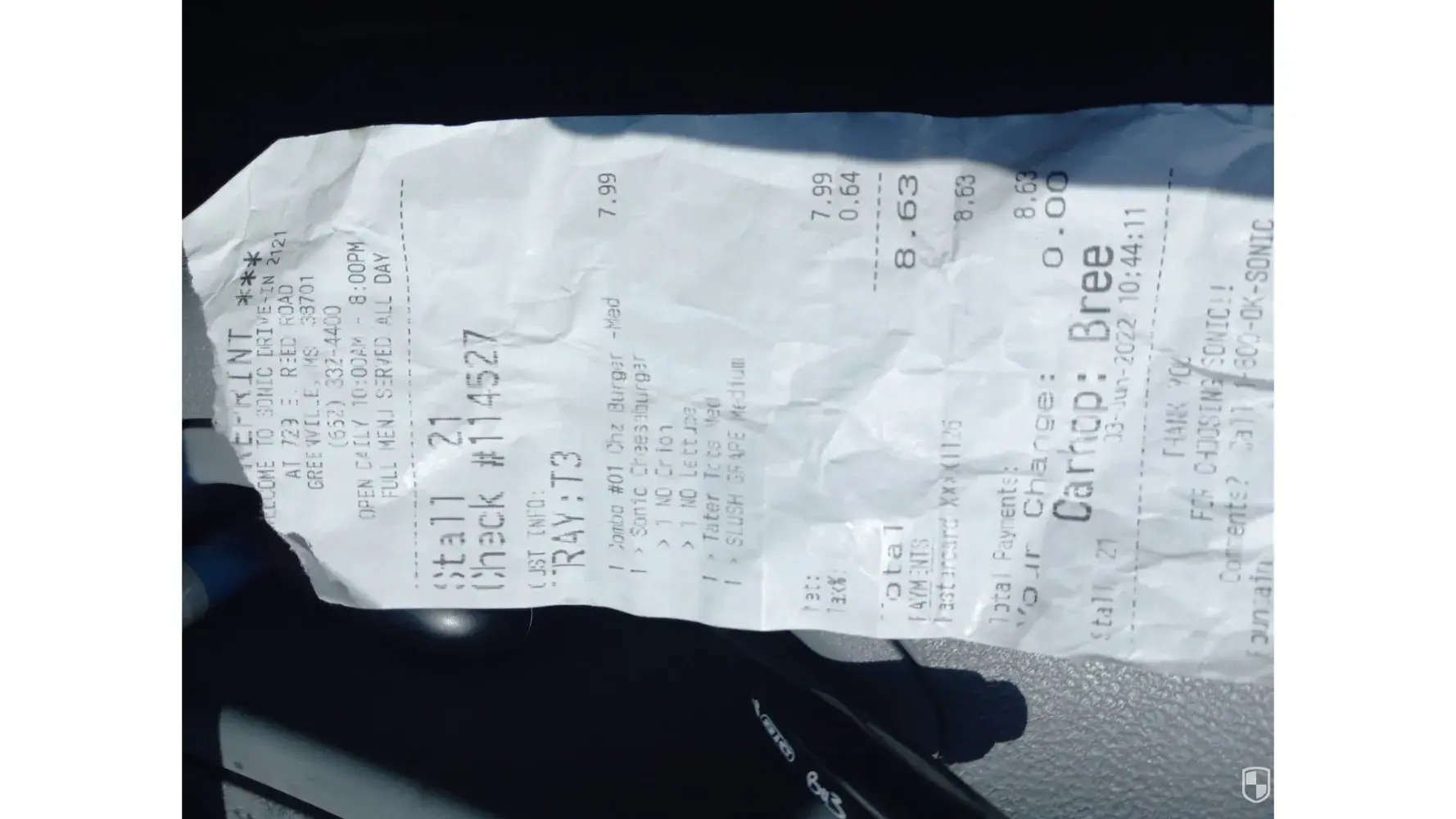 Tues 06/14/22 myself and two boys stopped at Sonic after wrestling practice. We live an hour and forty five minutes from Centralia and come there once a week for wrestling. Tues we were going to stop in Moberly and see the late movie Top Gun. We ordered 2 bacon cheeseburgers no tomato and one pork tenderloin. After 15 minutes I pressed the button once again...