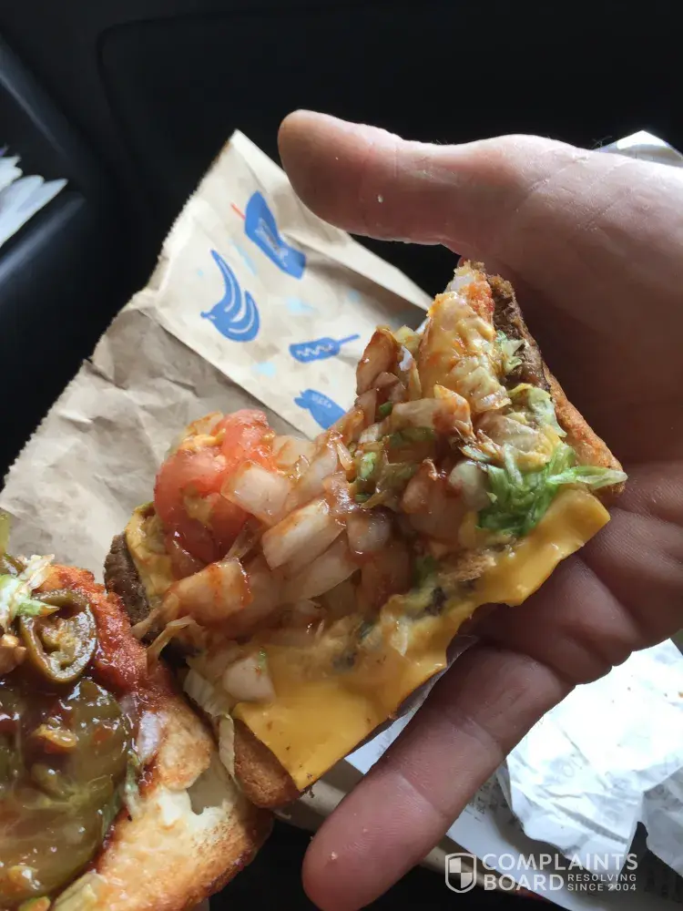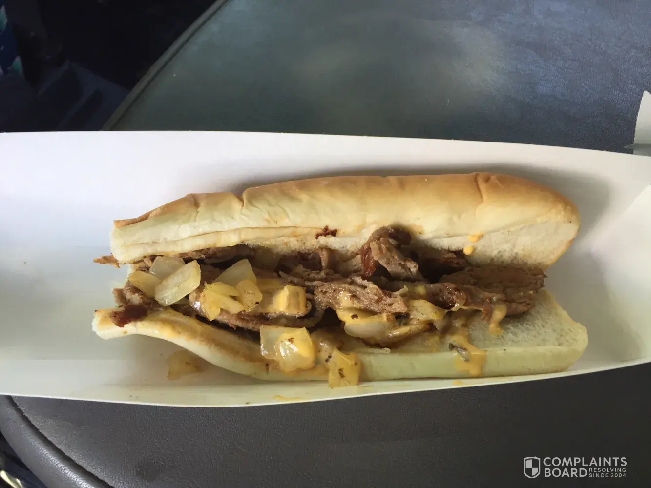 First, let me preface this with that about 95% of the time I'm satisfied with my service and purchases at Sonic and unfortunately those go untold until now. So there's that. Today was a let down. First time purchase of a foot long cheesesteak. Looked nothing like the pics. Girl at the window was great except she failed to do final quality control prior to going to the customer. Of course I'm assuming this is not what this product should look like. Excuse the fact that I took a bite off of it prior to the picture. I would have addressed it there but I went through the drive-by and didn't look at it until I got back to work. To be honest this seems to speak of false advertising really if this is actually what this is supposed to look like.