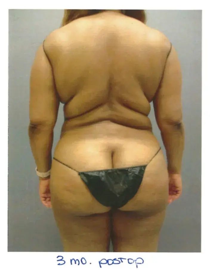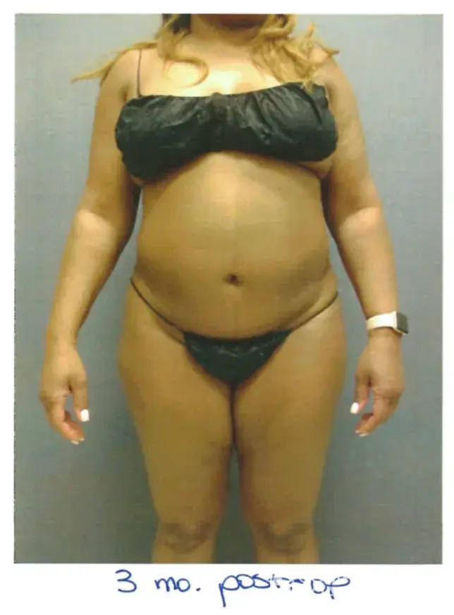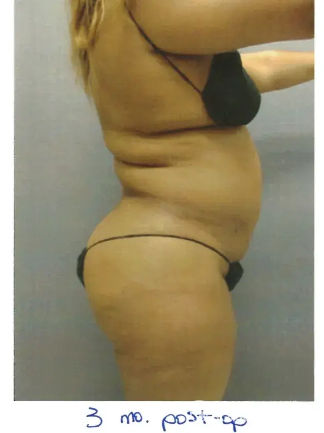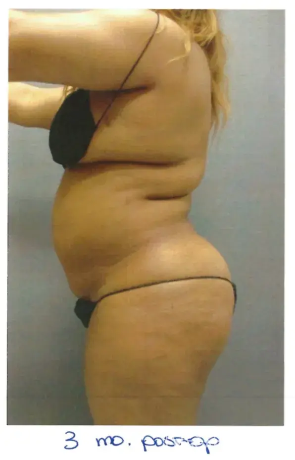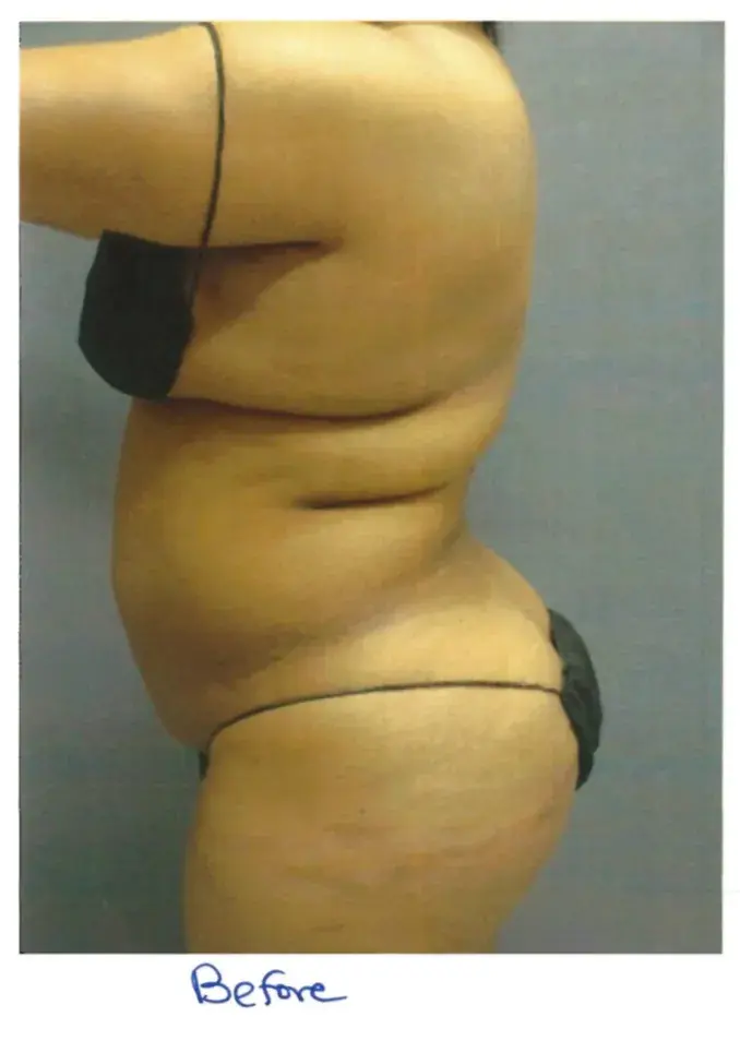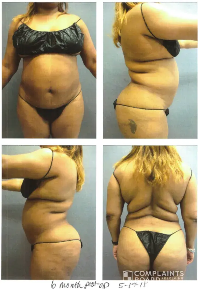 Upon my one-week post-op appointment, I had not lost any weight and noticed absolutely no difference. I voiced my concern and a manager came into the room and told me that it was normal to have weight gain because of all of the fluids that were injected. I was concerned that there was a large collection of fluid in my lower abdomen and asked if I should get post-op massages. She told me that my body would absorb the fluid and the massages would cause more bruising and is not recommended. I followed all of the orders and suggestions to the letter. I then ordered a garment, and when I received it, it was different from what I ordered, but I could live with it. Within the first week, my nail punctured a hole in the garment.