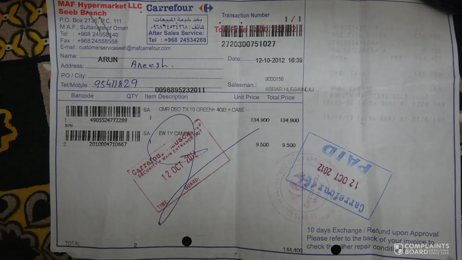 Again the complaint came and submitted to carrefour muscat city center as the warranty expired and it was in extended warranty and they replaced under extended warranty.