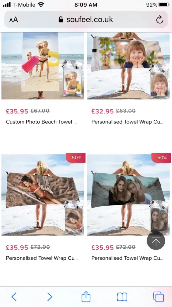 Having seen the photo-upload towels on your website, I decided to purchase one for my father. EVERY SINGLE image on your website, depicting what the towel's final-outcome would look like, has the image filling the ENTIRE TOWEL (see attached screen shots). My father's towel arrived with a shrunken, partial photo in the centre of a plain white towel.