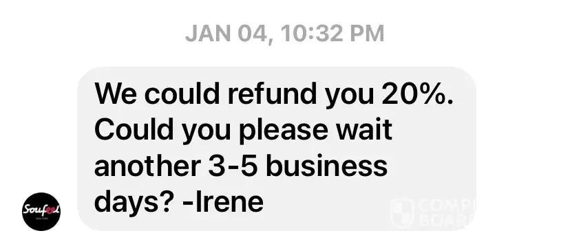 Desired outcome: A full refund.