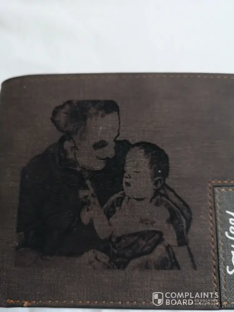 I brought a personalised wallet with a picture of my dad with his great grandsonon it, the image on wallet was nothing like the picture. I would like a refund or a replacement that looks like the image.