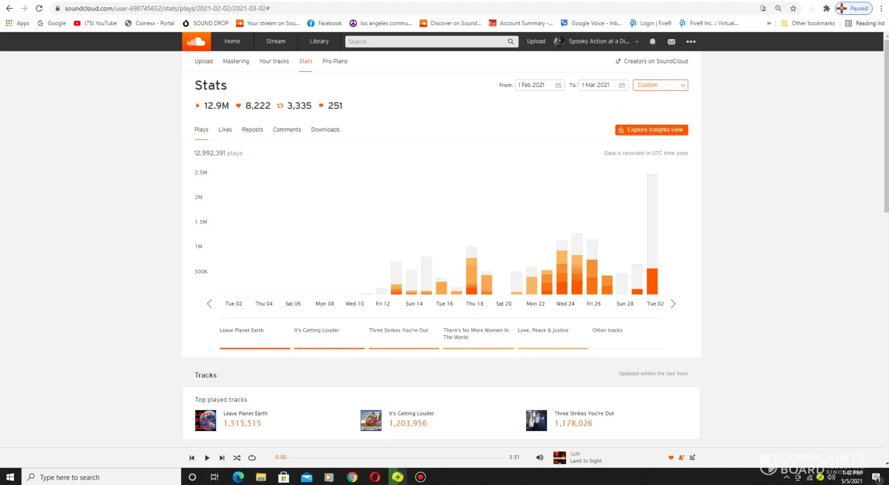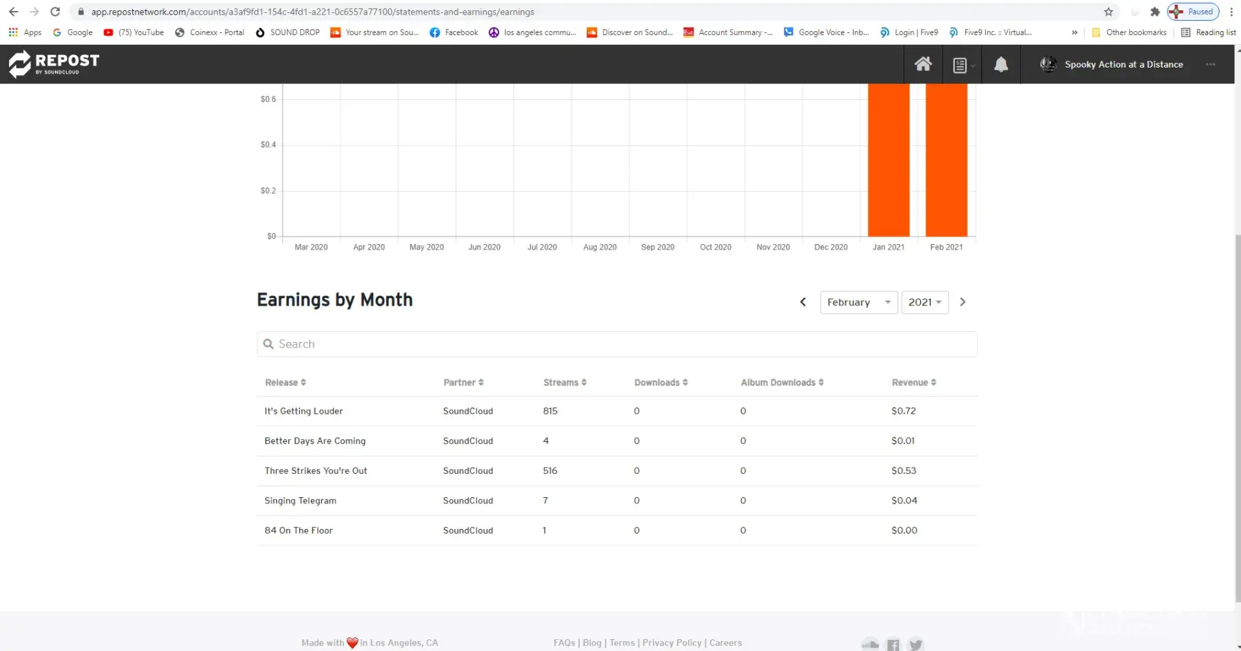 To go on however, the statistics presented to me by SoundCloud's subsidiary "SoundCloud Repost".That has the obligation to pay me my royalties on behalf of SoundCloud. Obviously do not match their mother company's (SoundCloud's) statistics. As shown in the attached screenshots I have sent along as proof that I am owed royalties for the month of February 2021.