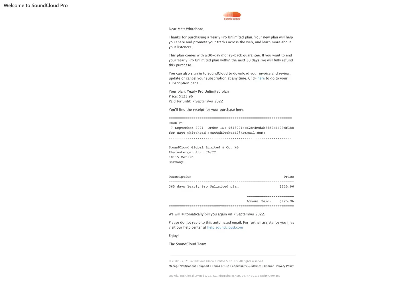 I have been charged £90 for a Soundcloud account that should have been free and has been so far. I use it to post my harmonica music on Facebook. My email address is robert.[protected]@btinternet.com Please sort this out or I will be forced not to use Soundcloud again. I regularly use Facebook and advise my friends to use Soundcloud. It is a very good way of letting my friend listen to my music.