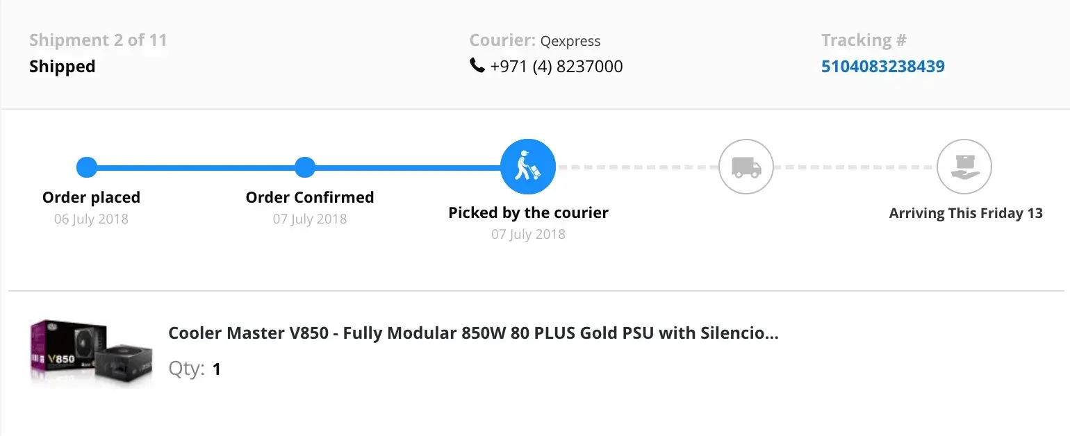 My shipment (No. [protected]) has taken a grievous amount of time to be delivered. It has exceeded way past the "expected delivery date" (Friday, 13th of July 2018) by about 5 days and it only seems to keep going. I have contacted the courier company, Qexpress on two separate occasions on two consecutive days and their outcomes have been painfully unsuccessful. What i have gotten from them so far are two claims saying that my item is "being located within the warehouses" and that it "shall be delivered within 2 to 3 days", both of which seems to be futile and false. I have waited a total of 11 days since the placement of my order (Friday, 6th of July 2018) and 5 days since the anticipated delivery date mentioned above. Please take necessary actions against the seller or the courier company and make my item be delivered as soon as possible.