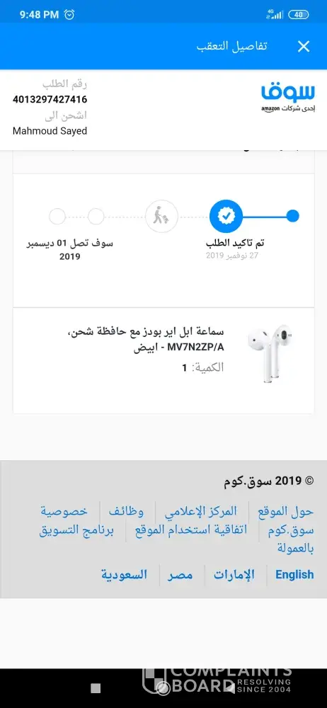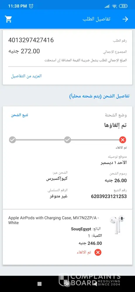 قمت بشراء سماعه من قبل سوق والبائع سوق وتن تاكيد الطلب واتكتبلي ان الطلب جاهز للشØÙ† وان كات ÙÙŠ كميه ÙˆÙØ¬Ø£Ø© ااطلب اتلغي بدون اي سبب انا Ù…ØØªØ§Ø¬ الاوردر بتاعي انا مش اول مرة اتعامل معاكوا ولو الاوردر بتاعي مجاش مش هيبقا ÙÙŠ مصداقية وانا هقدر اتصر٠ساعتها عشان الاوردر متباع من سوق مش اي ØØ¯ تاني