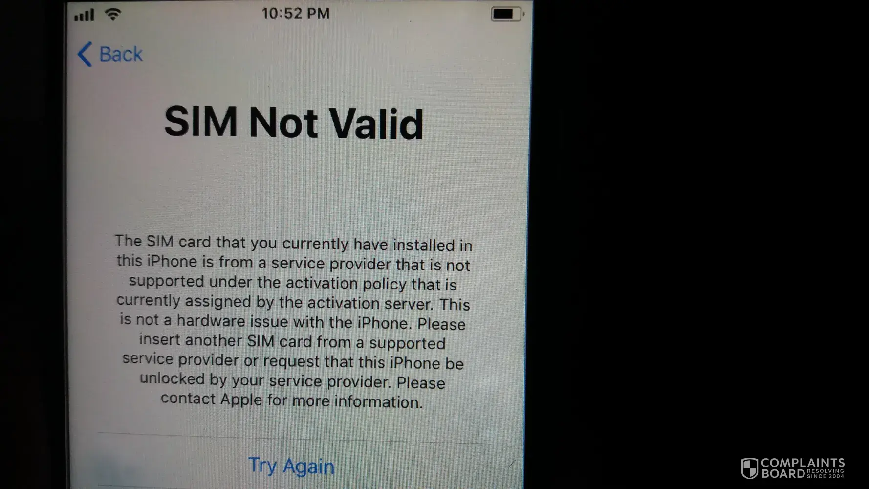 Today I have took the phone and fully charged and while putting the sim it's showing an error message as shown in the screen shot. In order to clarify the reason behind the message / error I have taken the phone to a mobile shop and they advised me that the phone is locked with country lock.