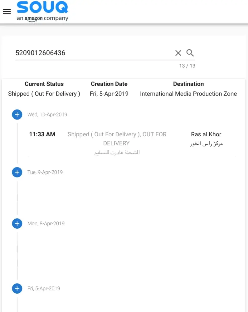 2nd the address is wrong so please connect souq. Com not the shipping to confirm iam call souq and they confirmed on address as per address on application so we make a ticket and the order will deliver tomorrow for sure noting that iam received 3 msg that the couriers on way on 5 may / Tuesday 7 may and today