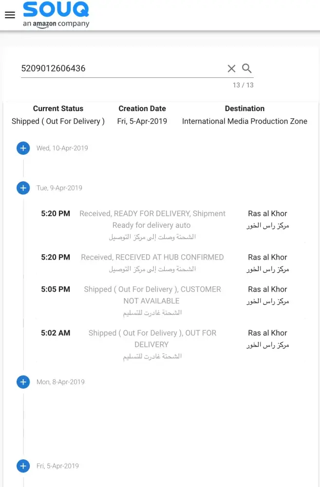 - wednesday, april 9, no delivery, no call, even if tracking & sms says out for delivery, and there's already a ticket for complaint