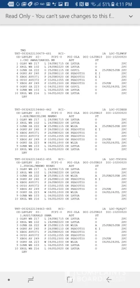 their tickets, we noticed Avianca touched the files and new tickets numbers attributed to the passengers as below:
