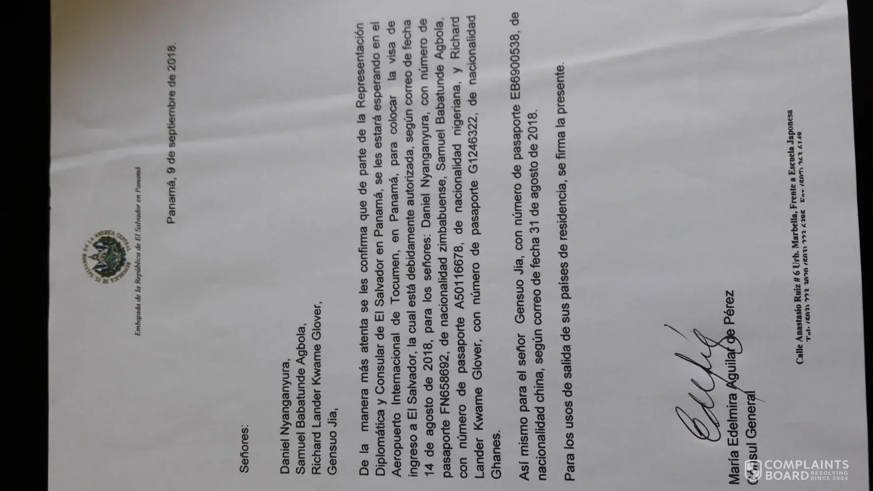 During checkport security check prior to departure, our authentic email documentation confirming that visa for el salvador has been approved for us to take in panama (signed by the vice minister of the ministry of science and technlogy in el salvador as well as the consul general of the embassy of the republic of el salvador in panama were rejected by checkport officials led by one phakathi who insisted on having the originals of the doumentation on a letterhead and signed — on a sunday, and considering the time difference between el salvador and south africa.