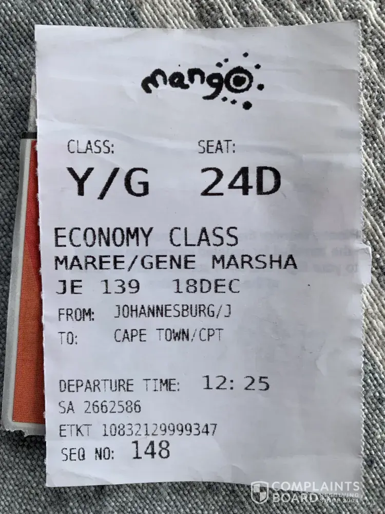 We are lodging this complaint for a thorough investigation into this incident with a view to preventing any such future occurrences. we are also making a request for a refund of the money we lost by way of buying new ticket, arranging new airport shuttles and losing hotel reservations. these are in the region of r20, 000. we are ready to supply further details to support this cost calculation.