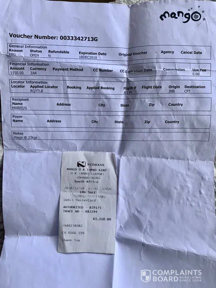 Read full complaint156 South African Airways / FlySAA.com Complaints
