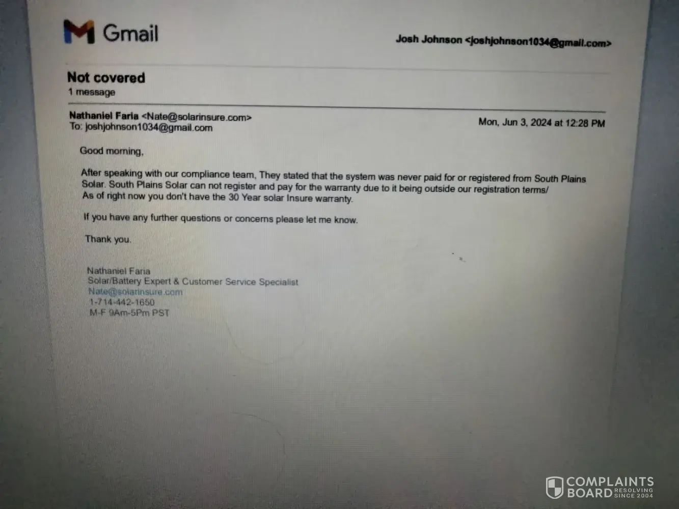 Read full complaint and 1 commentSouth Plains Solar put in a system on my house