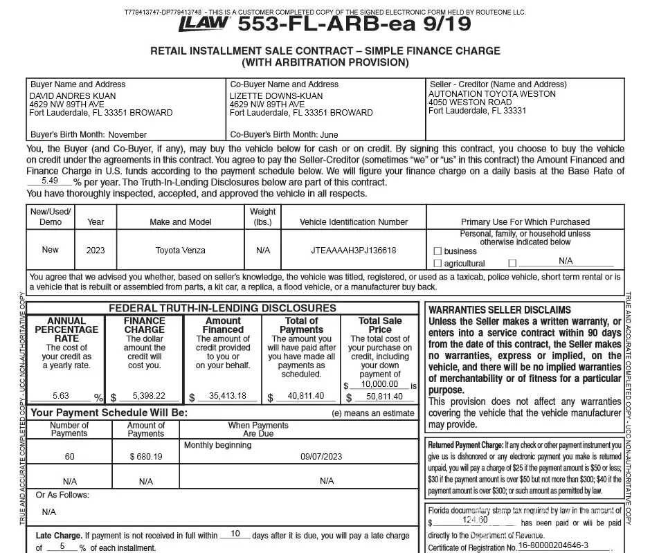 My wife and I purchased a new 2022 back in June 2022 from Arlington Toyota in Jacksonville FL. The whole process has been a complete nightmare. They messed up our paperwork twice and we had to resign contracts. On July 22 2022 I called Southeast Toyota Finance to get our account number and first payment date as we had no received a bill yet. The guy I spoke with gave me the account number and I told him I was pretty sure our first payment was due August 10 2022. He said no it’s due Spet 10 2022 which I asked him are you sure and he said yes. Today August 19. 2022 we received a call from them stating our account is 8 days past due. I told the lady that I had called in and she verified that I did in her system. At that point all she could tell me was that this was going to be escalated up. This has been the worst experience we have ever had buying a vehicle. We usually stick to American brands but thought we would give Toyota a try. Lesson learned this was our first Toyota purchase and it will be the last. Horrible from start to finish with the buying process.