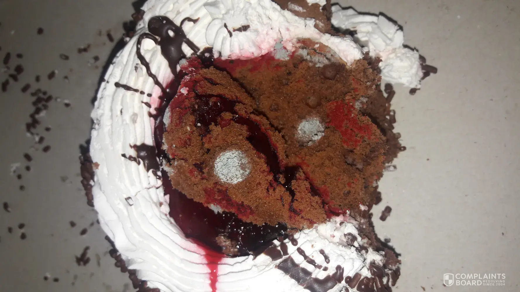 I went to spar at lakeside in richards bay today and bought a round chocolate cake slice with fresh cream and strawberry jam. Firstly it was not fresh at all and hard as a rock. When i took my second bite to my surprise there is mold. Im disgusted by this and i feel sick. This is unacceptable. They should not be selling old baked goods to people.