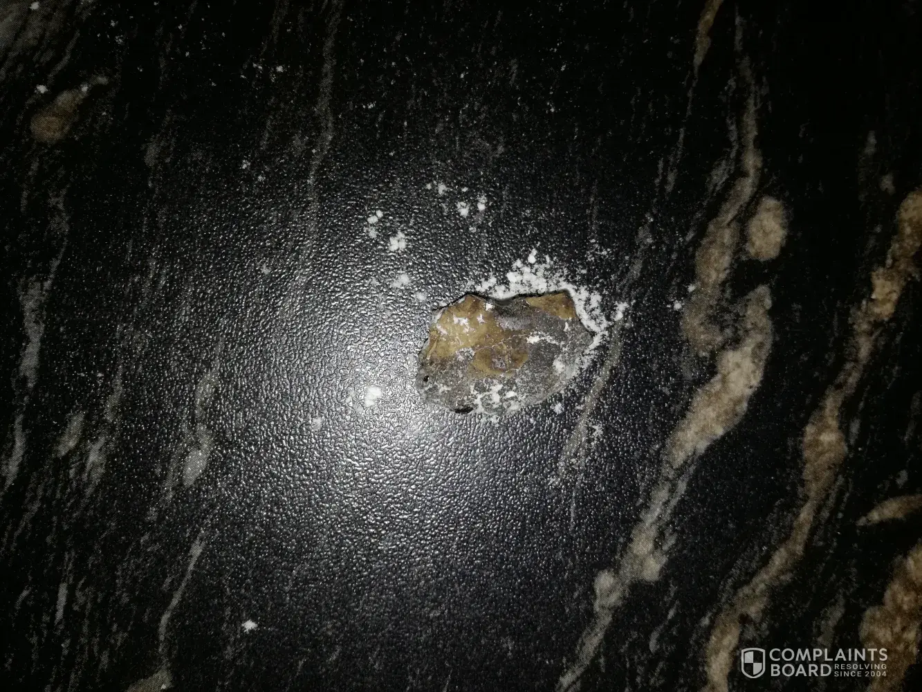I found this black brown hard thing in our flour, I would just like to inform you about it because it isn't the first time it happend. You can contact me through rheeder52@gmail.com if you would like to know more. Please find attached the photos. Kind regards
