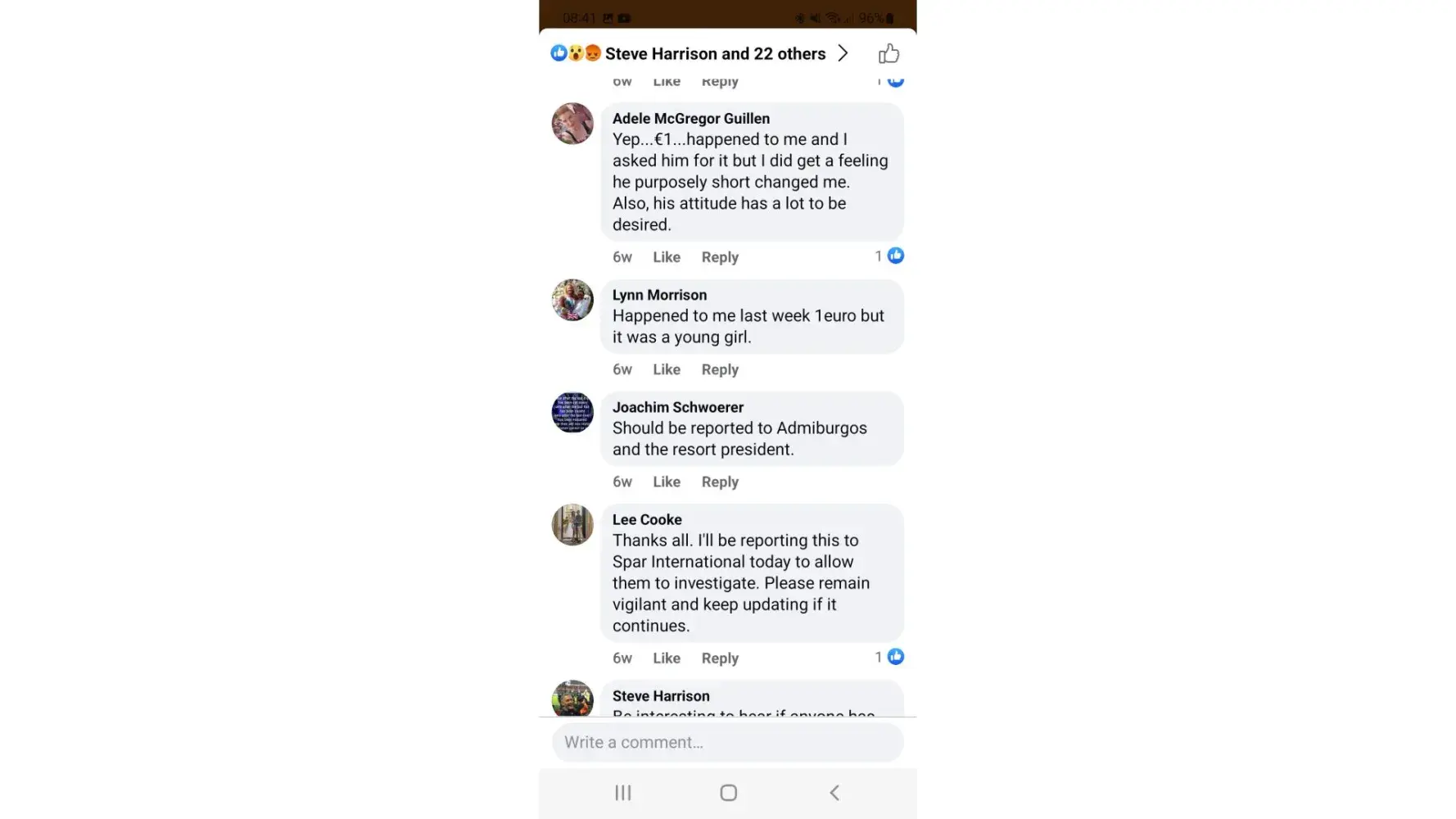 In the Spar at Le Torre Golf Resort. Staff on the till are consistently short changing people. I had this happen on multiple occasions during my stay and have also since investigated further to find multiple cases of this happening.