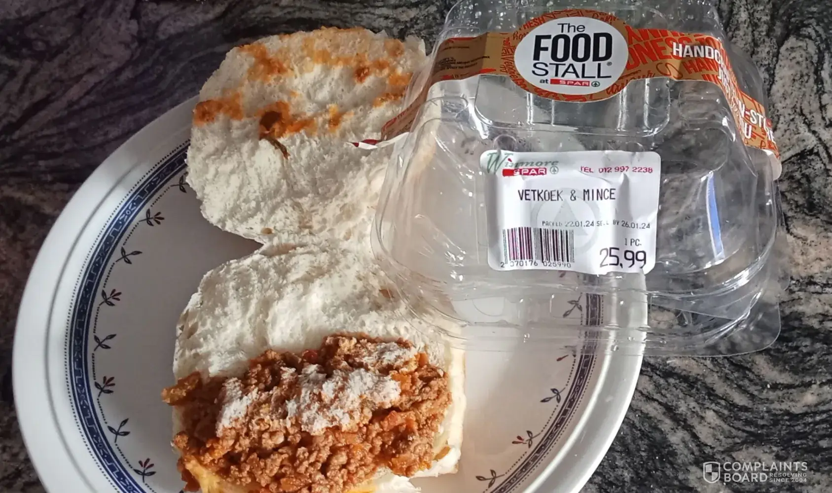 In conclusion, Spar's deceptive prepared meals, exemplified by my experience with the "vetkoek and mince" product, reflect a shameful betrayal of trust. I hope that by sharing my review, others will become aware of the grave consequences of Spar's actions and join me in demanding immediate change within the company.