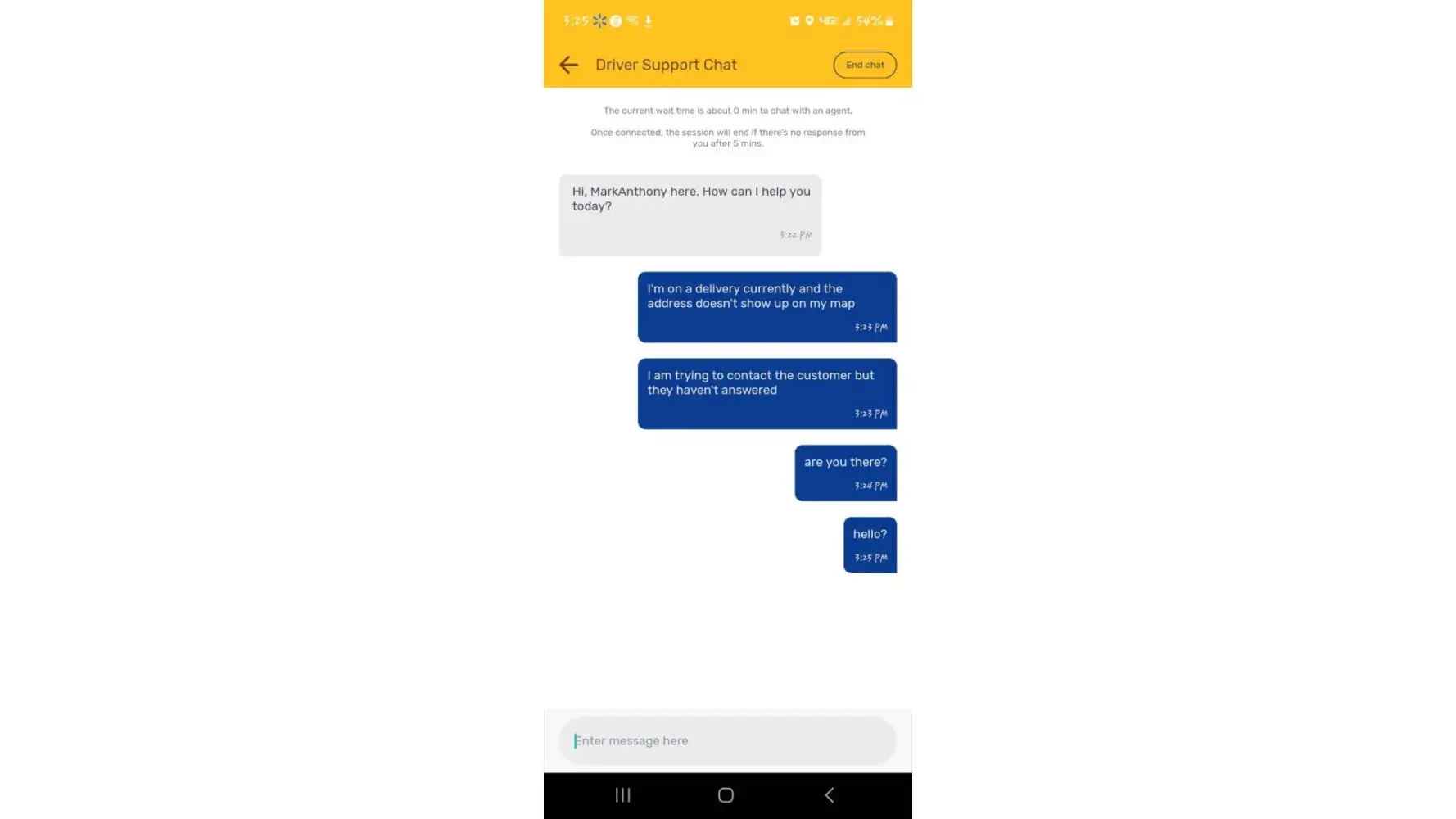 I was having trouble with a batched delivery and couldn't find a location and when I went to get help the first person answered then I explained my issue and he never answered again I ended up ending the chat and starting over with a new driver support assistant. I have screen shots of the conversation. The name of the driver support assistant was Mark Anthony