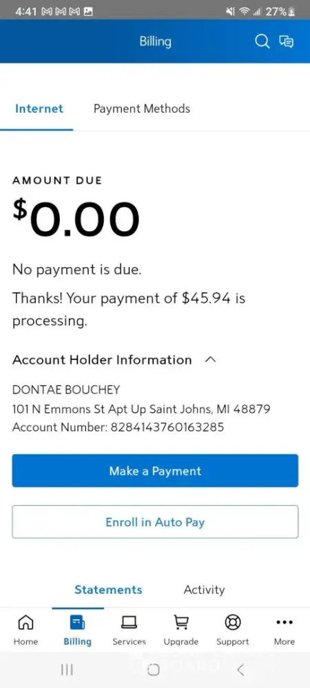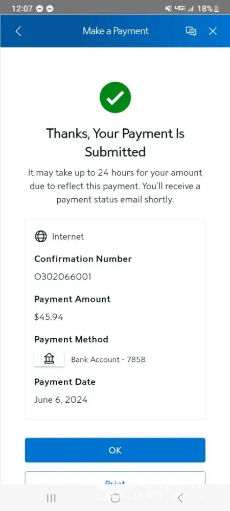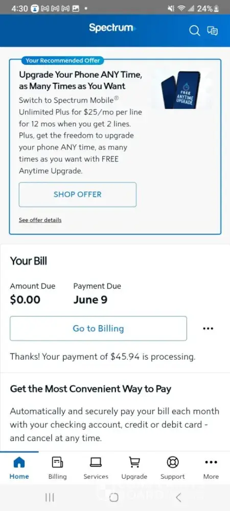 I had a balance of 96 something that was due by the 9th of June. On June 5th I made a payment of my back balance owed (that was allowed) of 45.94. The payment fully went through on the 6th. And was taken out of my bank account. Today, the 7th of June I got a notification from my bank that another payment from spectrum was taken out. So I got on my spectrum app and it stated as follows... thank you for your payment, it is currently being processed. Remaining balance due...0.00