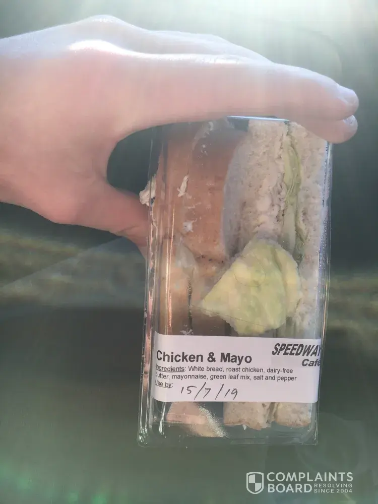I have the sandwich in a bag witch is in the freezer the manager gave me a receipt and kept the original i had already taken photos before going back to the speedway to approach the manager