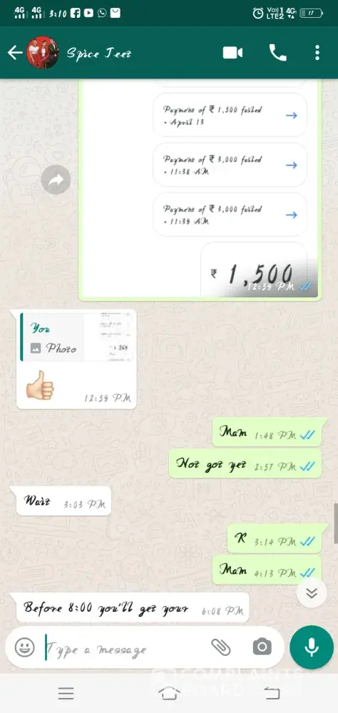 Please help me get my money back I am big trouble right now. A lady called me and said that I've got shortlisted for job in Spicejet Airlines and asked me pay 1860/- for proceeding with interview process and conducted an online test. Then next day they conducted a telephonic interview who is claiming himself as Aryan Singh Lead HR and from Spicejet headquarters and said that I've selected and if I'm interested to join then I've to pay 8500 /- for gate pass which will be refunded within 7 days. After payment I got to know that it's all fake and I asked for a refund. Now she is saying that it'll take 90 working days without any proper information. Please help me to get my money back. I am in big emergency right now. I've even asked for the proof of payment then they've sent me a receipt which is not so convincing.