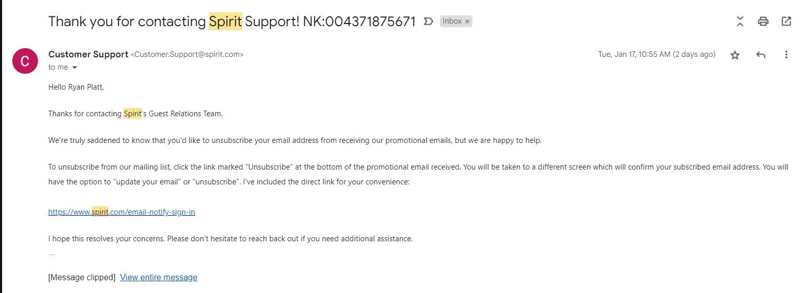 Desired outcome: Spirit's IT team needs to build an actual functioning unsubscribe page that works, and does not force you to choose to stay subscribed to promotional mailing.