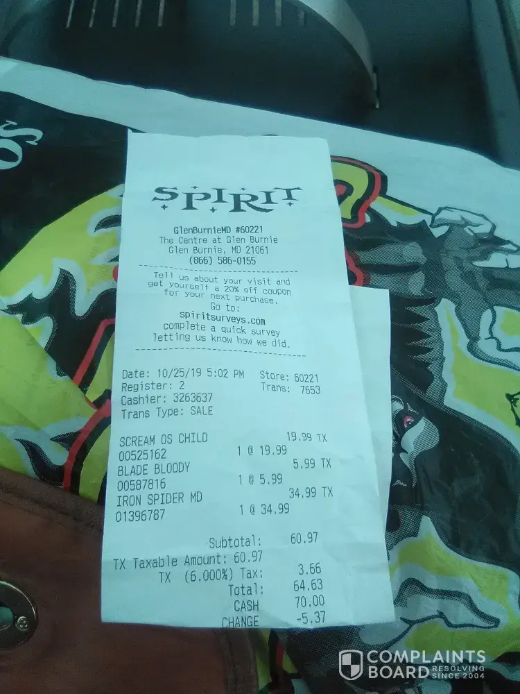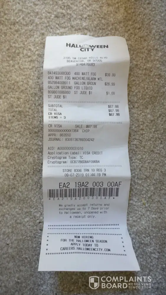 Completely ridiculous. If you're shopping at spirit Halloween, you'd better hope everything goes perfectly according to plan because customer service is NON-EXISTENT.