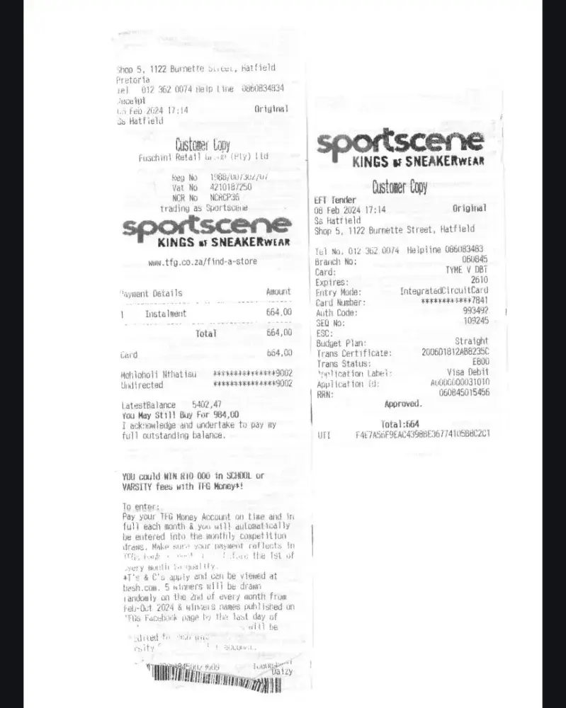 My husband and I went to Sportscene Lakeside Mall and purchased 1 pair of Puma Caven Sneakers however we wanted 2 pairs(size 5&6) since we are buying for twins before the purchase was finalized on the other pair we asked that they check where we can get the other pair and they found a pair at Sportscene Eastrand Mall (size6) they confirmed they had the sneaker and size we needed and we made arrangements that we would come the following morning for that pair, they agreed. Sunday morning (23/10/2023) my husband went there to get the other pair but to our surprise he was told they don't have the pair my husband then paid R1000 with the remaining balance of R100 so that they can locate them elsewhere and bring them closer to our location its been 3 days we haven't received a call with the progress