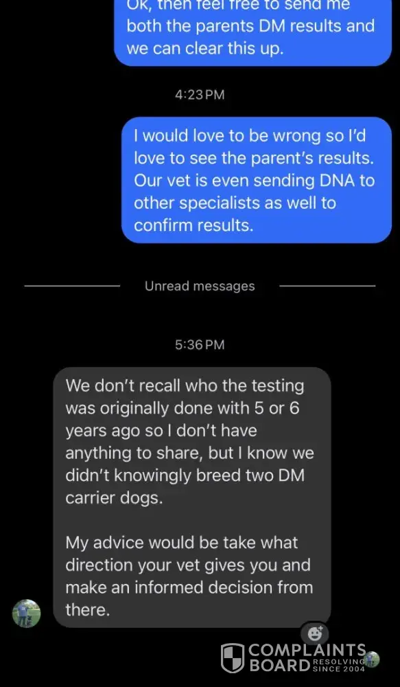 He also took almost 2 years to provide me with paperwork and only did so after many complaints. There are plenty of ethical breeders out there and this is not one of them. Spend your money elsewhere.
