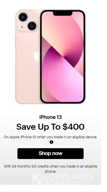 On Monday 9/5/2022, I was looking to upgrade my a phone on my account (Samsung A51 5G). On the website once I logged into my account, I saw an offer for $400 off iPhone 13 with an eligible trade in. Now when I tried to process the upgrade for an iPhone 13 Pro Max it shows that the offer for $400 off is there, but no discounts are applied.