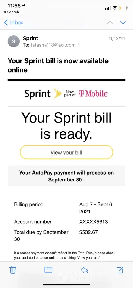 I am currently overdue on my phone bill because I am the victim of identity theft and I am not receiving any help from Sprint regarding this situation! I am extremely disappointed in the service I have received from them regarding this issue!