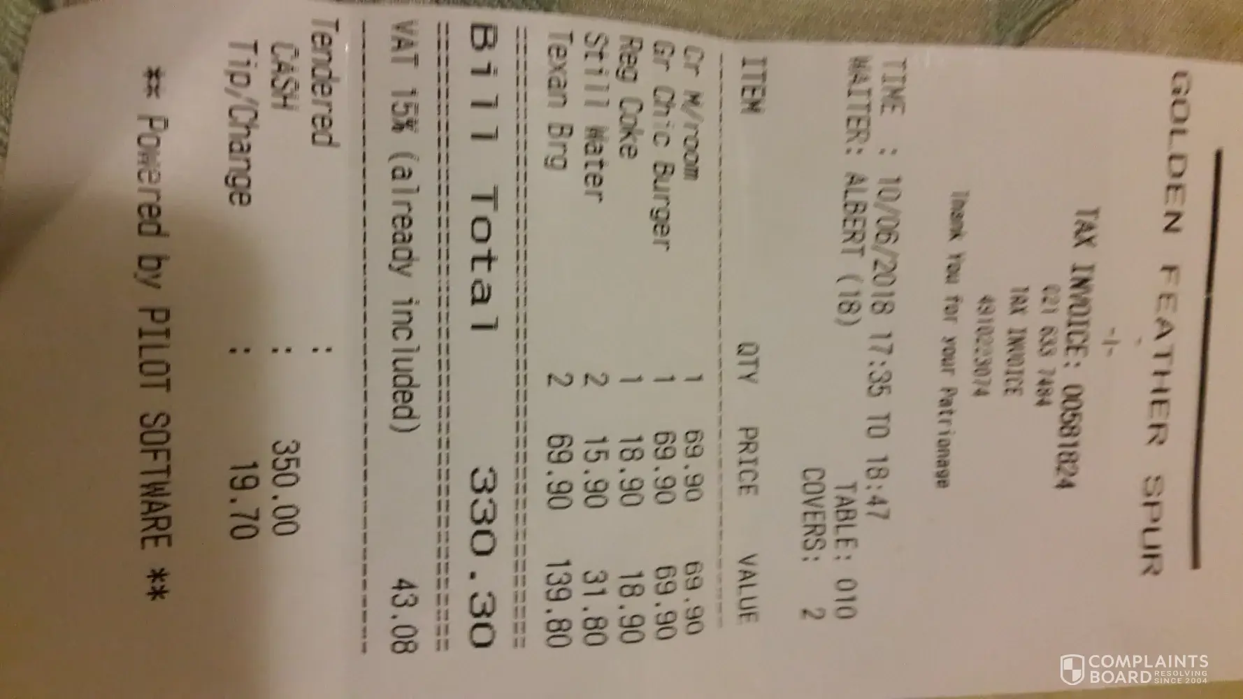 I would like to bring to your attention that last night, my family and I visited Golden Feather Spur, in the hope of enjoying Iftaar at Spur.