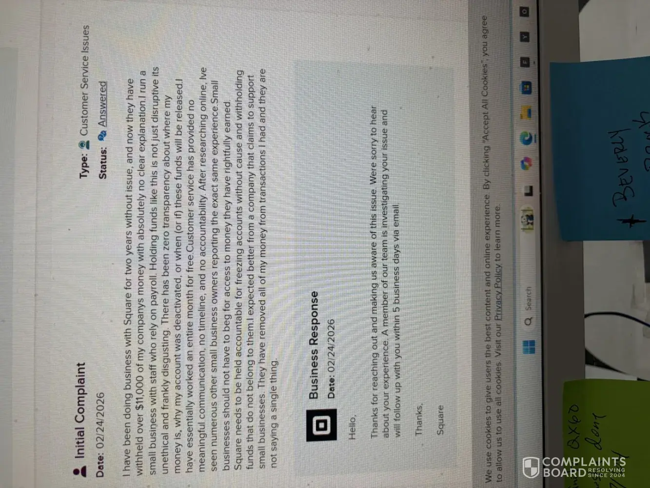 If you look, thousands of citizen consumers are all having these issues. It seems Square thinks it's all powerful and can do this en mass now. And when someone needs assistance and complains, there is purposely no way to get ahold of anyone.