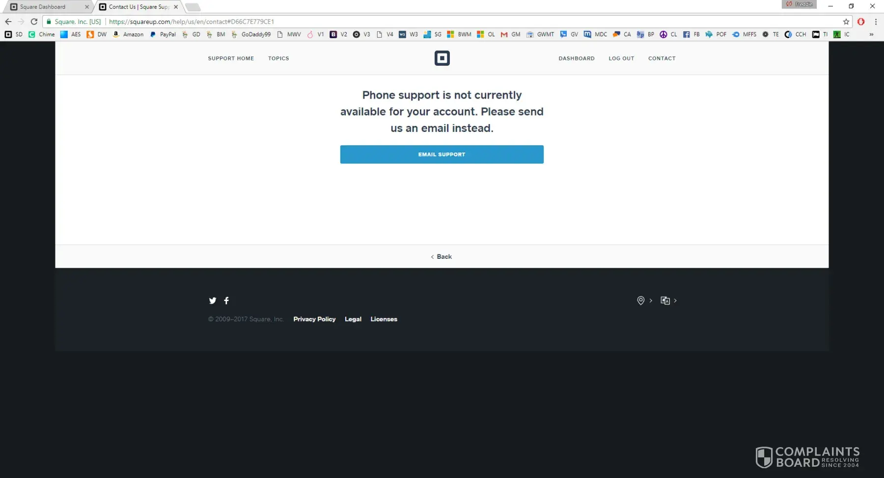 They offer No other means of reconciliation on their website. At this point I think I will have to engage the credit card company to stop the transaction and do any reporting against Squareup that is needed.