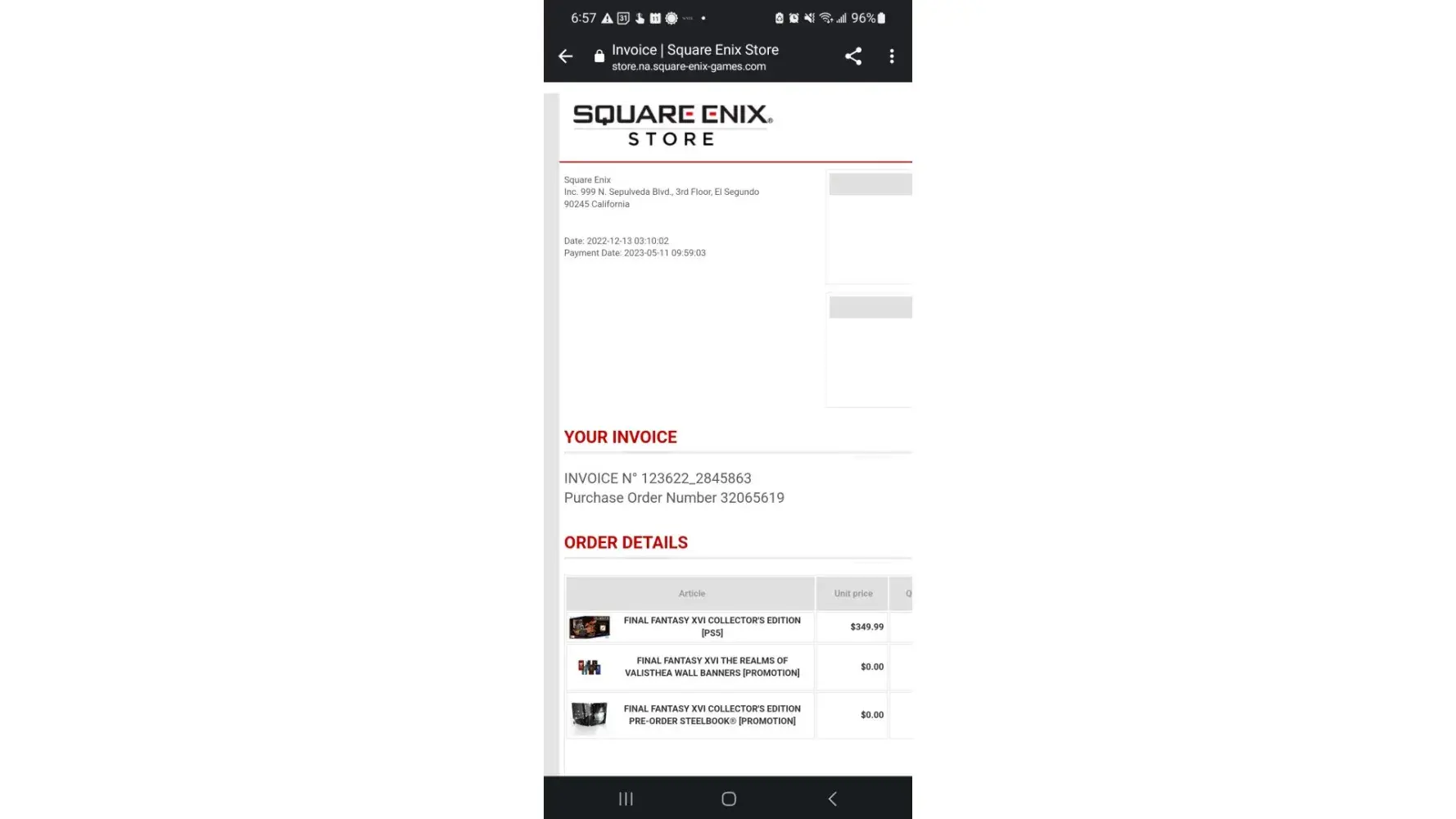 I purchased Final Fantasy XVI Collector's Edition for $412.31 on May 11, 2023. I receive all items except for the pre-order digital item that was supposed to have been sent via e-mail. I did not receive any e-mail notification for the pre-order digital code. the order # for Final Fantasy XVI: [protected]