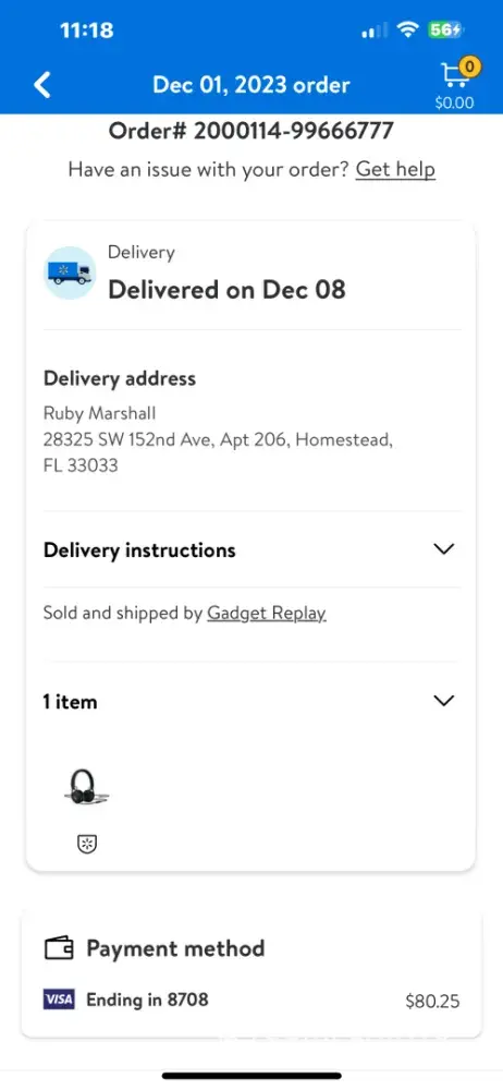 Time placed Oct 8, 2024 at 5:38 AM Order number [protected] Total $0.00 (1 item) Sold by photonled