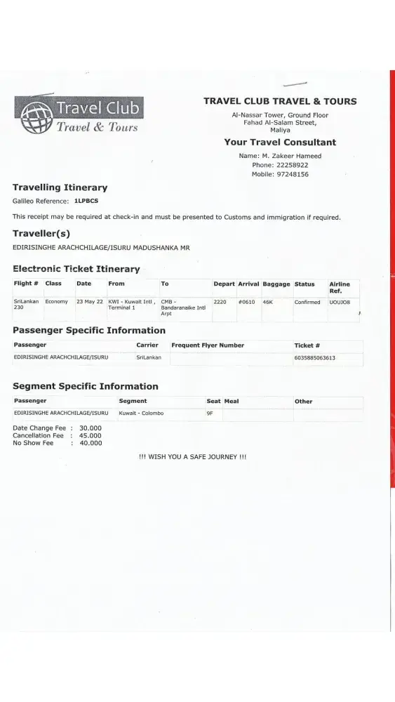 *DON'T BOOK ANY TICKET WITH SRILANKAN AIRLINES, IF YOU ARE NOT 100% SURE OF YOUR TRAVEL*